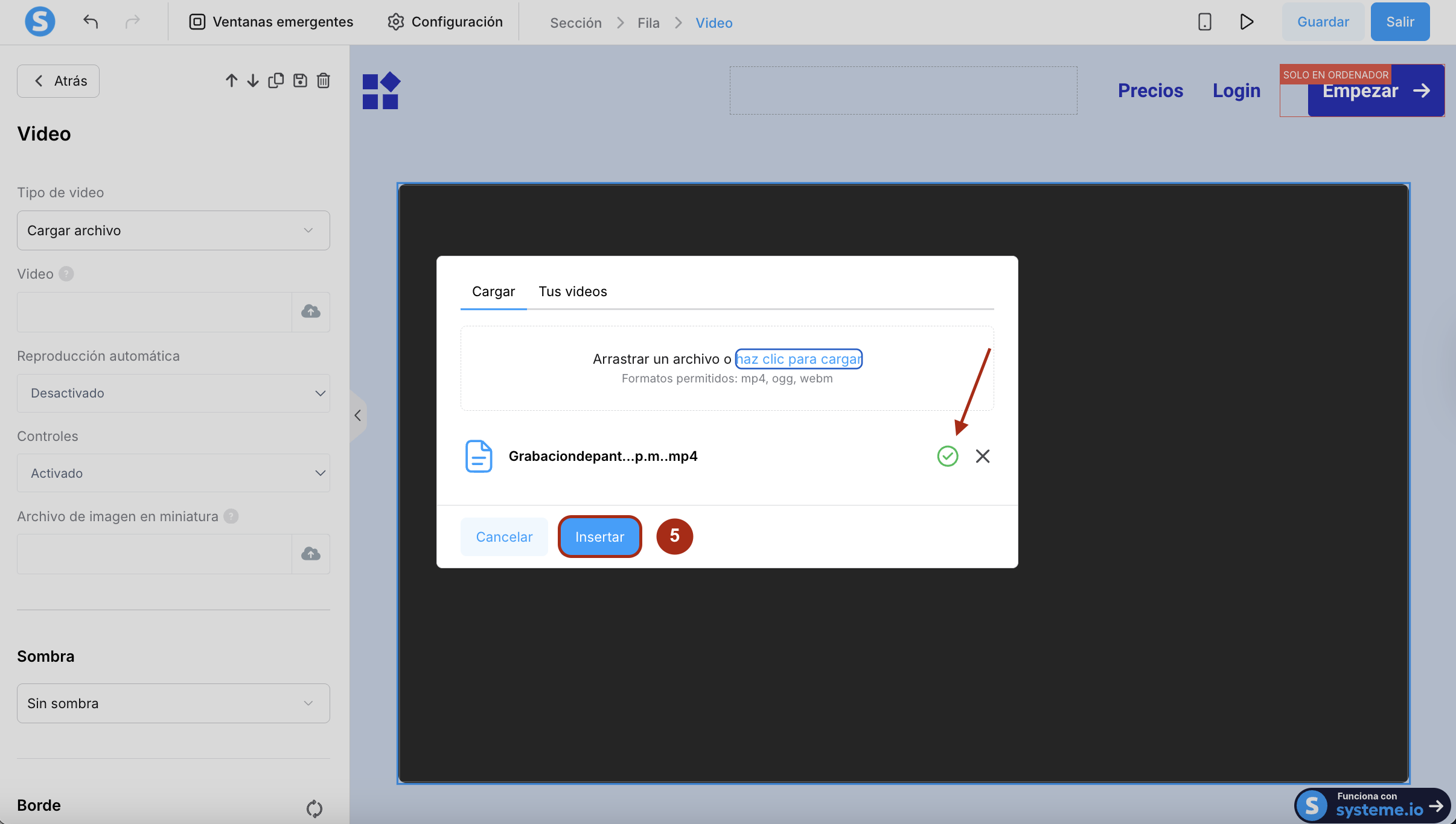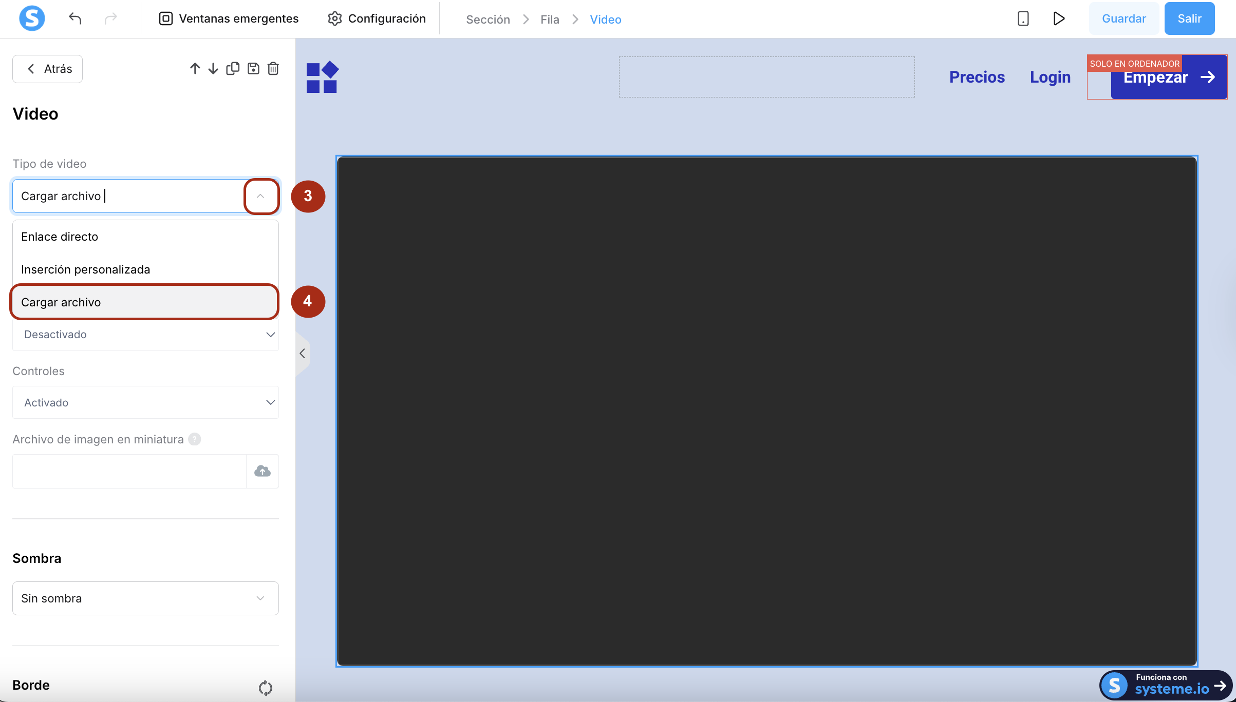 - Alojar tus video en systeme.io cargando el archivo del video a tu cuenta.