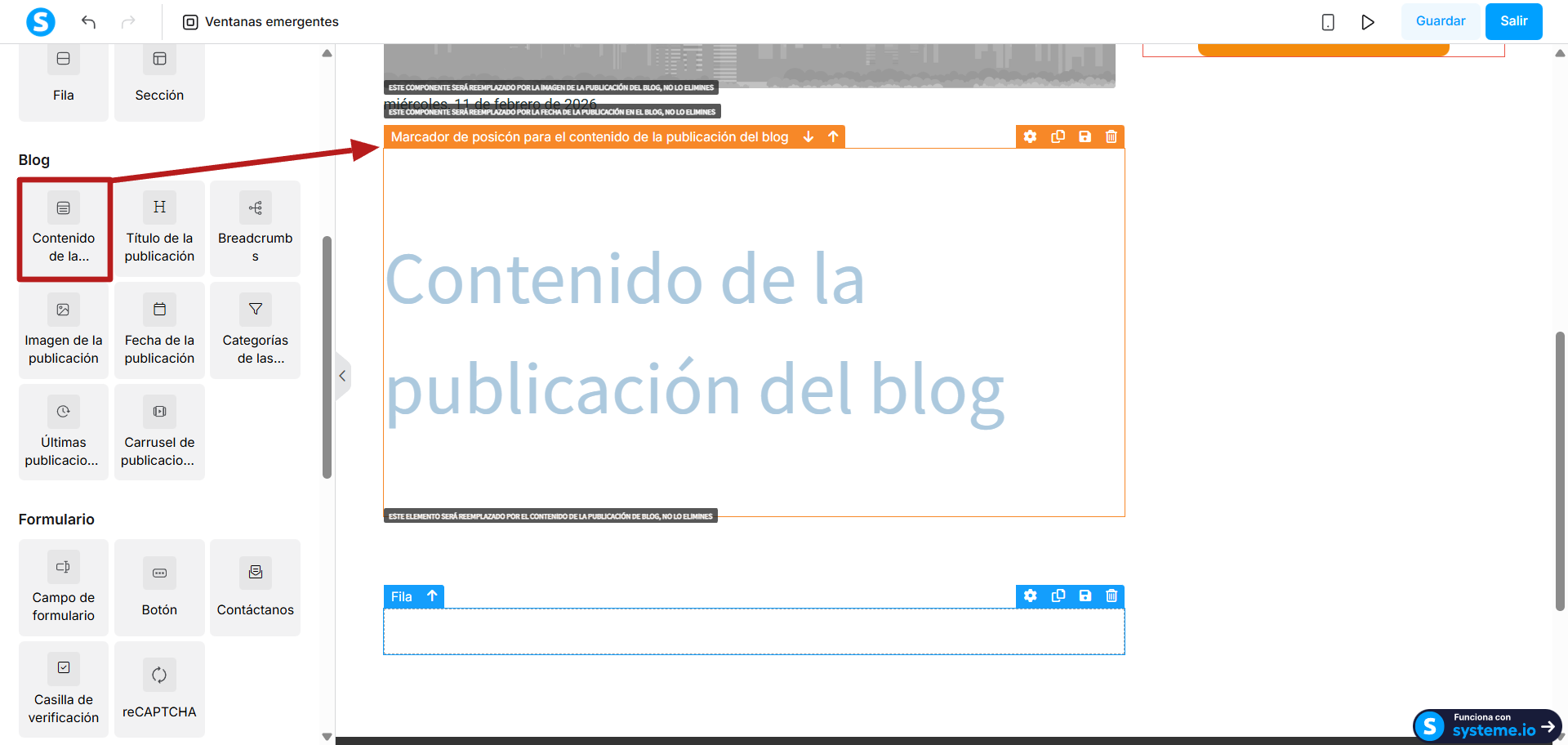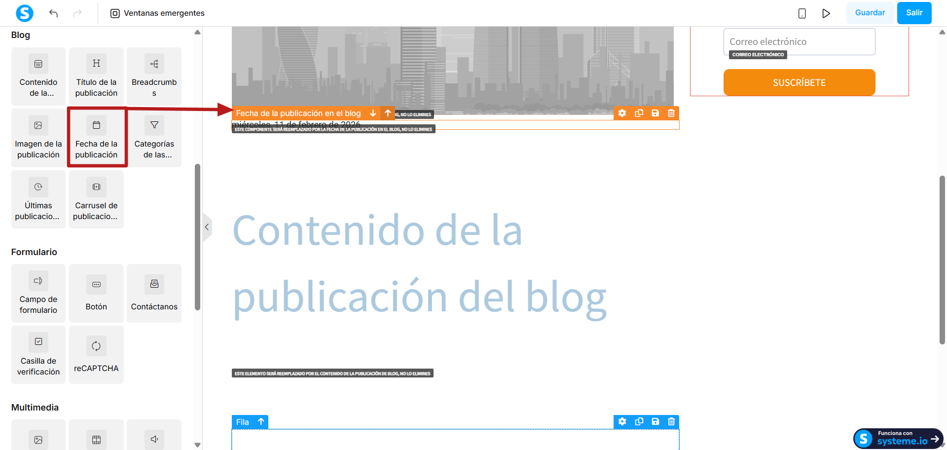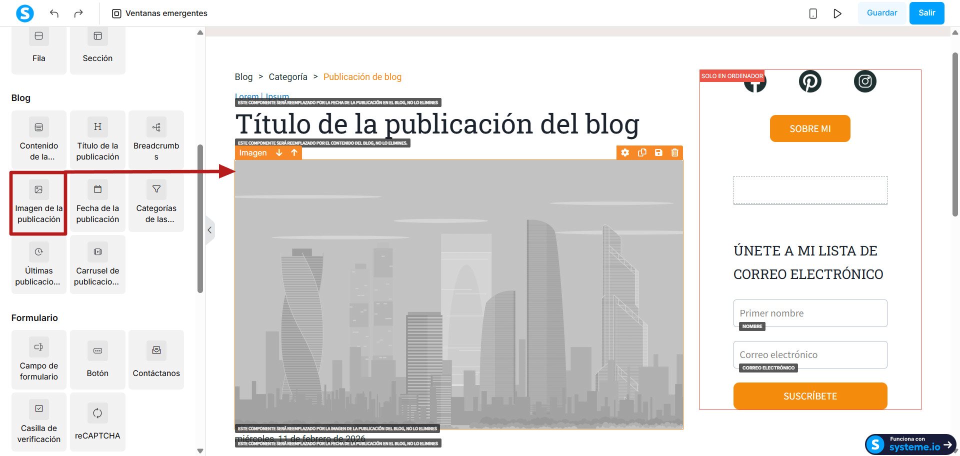 3. Imagen de la publicación del blog: Este elemento será reemplazado automáticamente por la imagen de portada subida a tu publicación cuando fue creada.