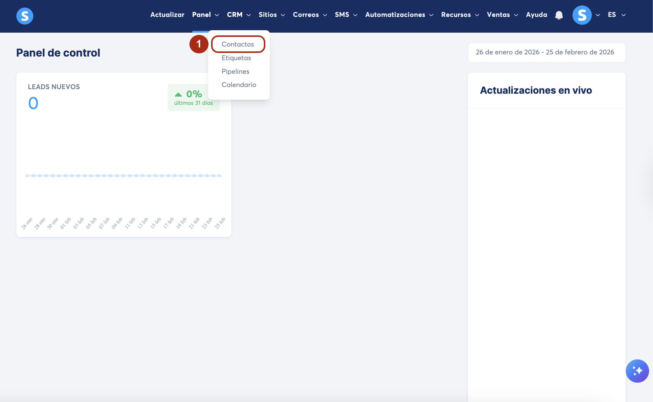 Ve a la pestaña CRM y haz clic Contactos (1).
